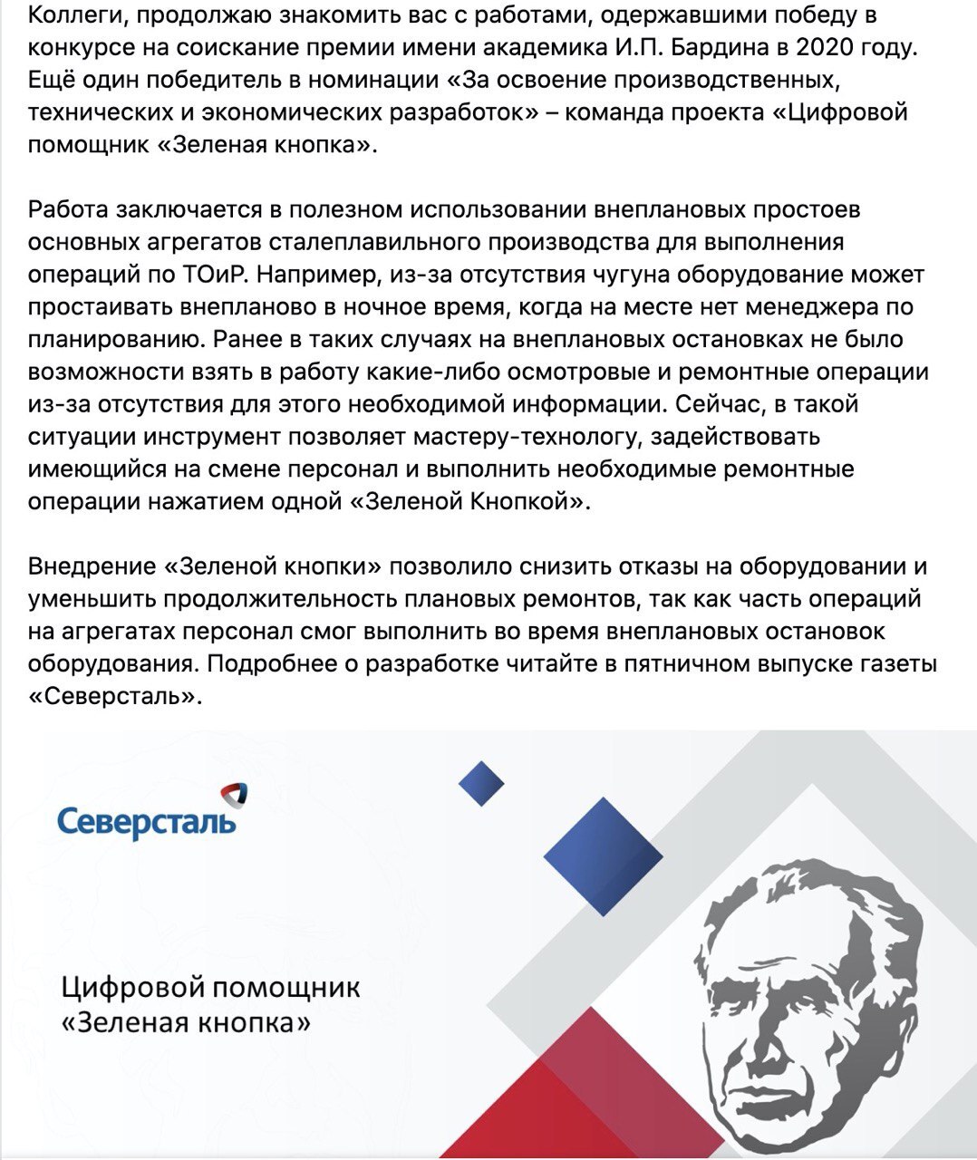 Очень рад, что на Северстали автоматизировали данную классическую практику.